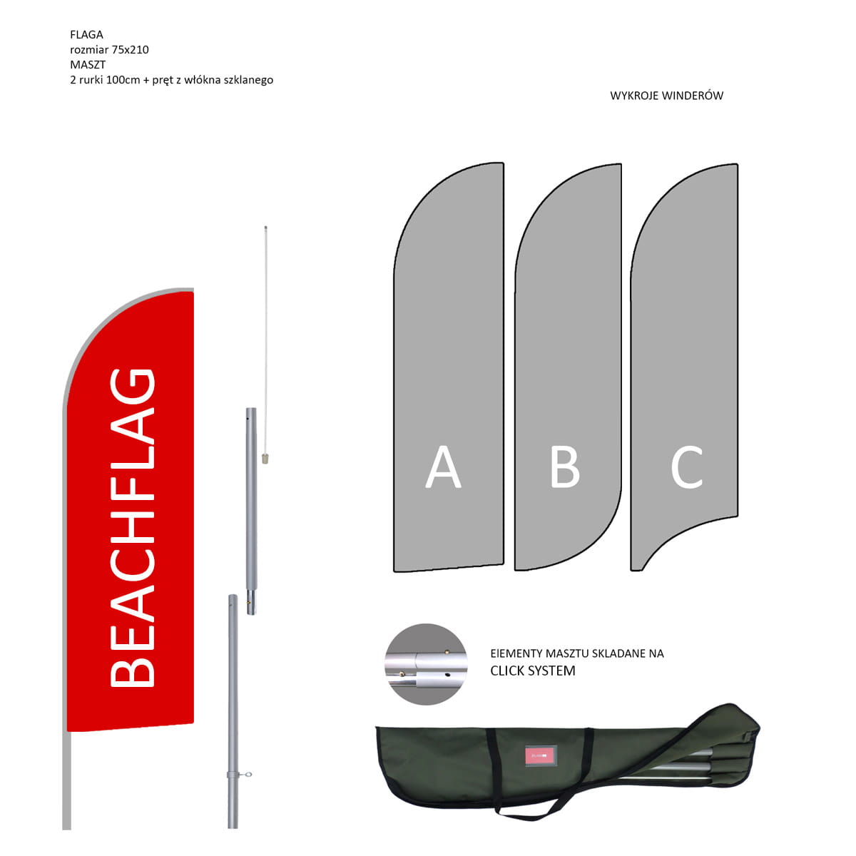 FLAGA REKLAMOWA BEACHFLAG EURO 210x75 cm BEZ PODSTAWY