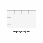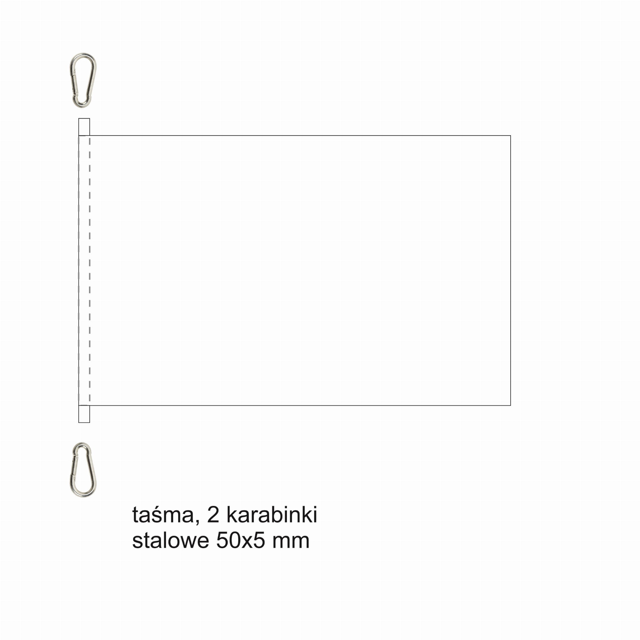 Na lewym, krótkim boku wszyte 2 karabinki INOX 50x5 mm i ucho do ciężarka masztu, lub tunel do drzewca.