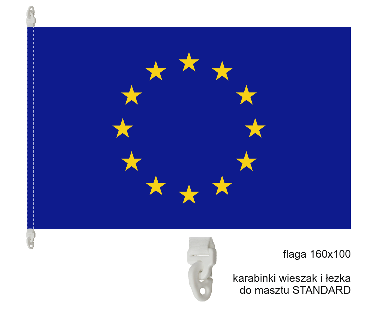 FLAGA UE 160x100 na maszt - karabinki wieszakowe