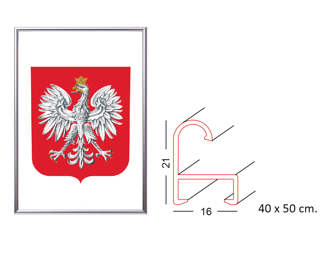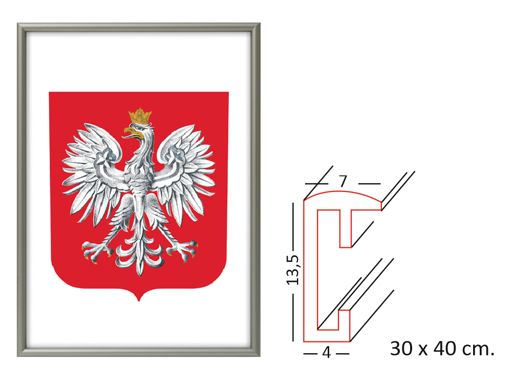 GODŁO POLSKI RAMA ALUMINIOWA SREBRNA (2 ROZMIARY)