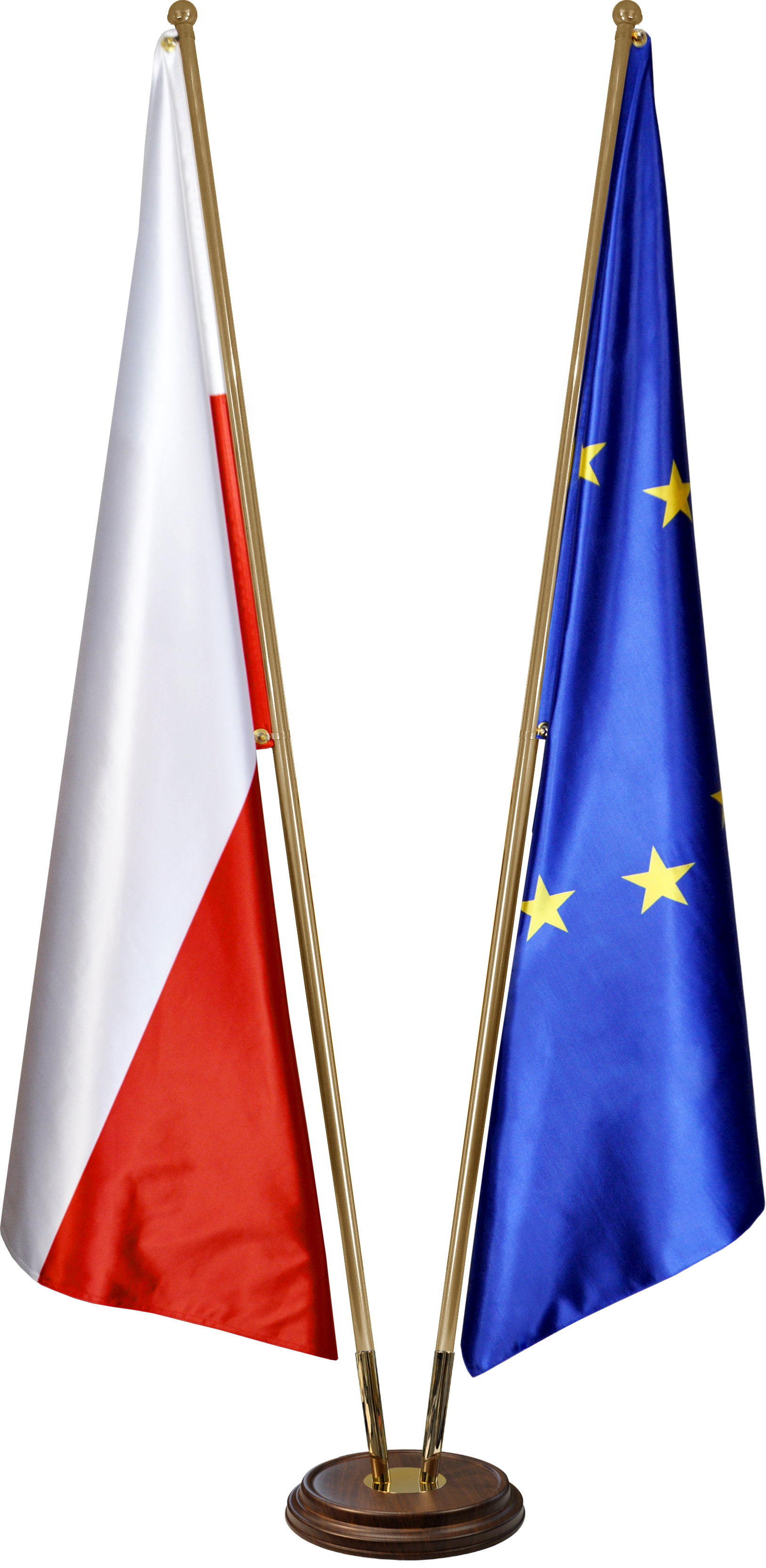 Dwie flagi - SATYNOWE SZTANDAROWE - czterowarstwowe 155x95 Polski i Unii Europejskiej.