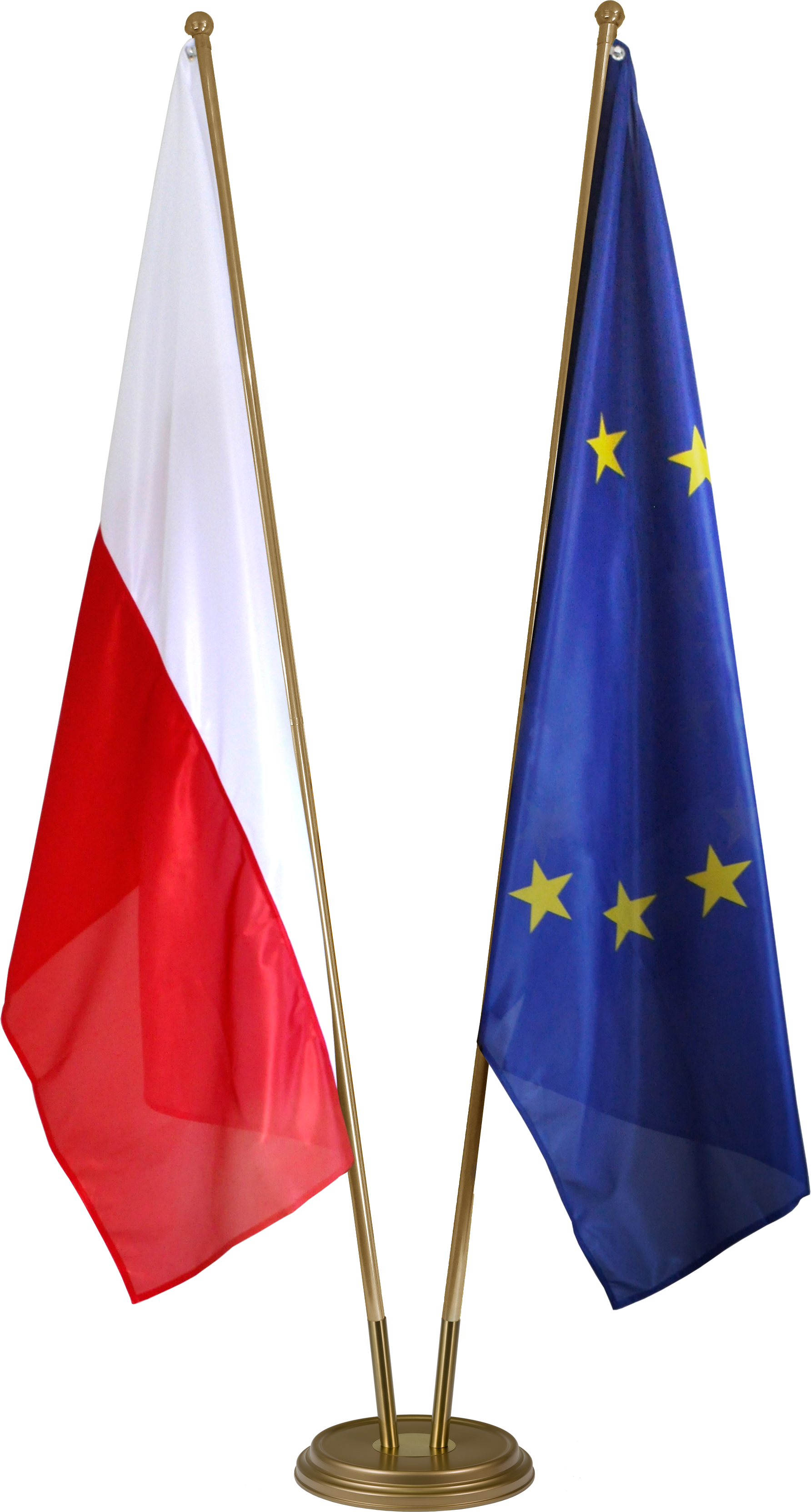 Dwie flagi - POLIESTROWE - jednowarstwowe 160x100 Polski i Unii Europejskiej.